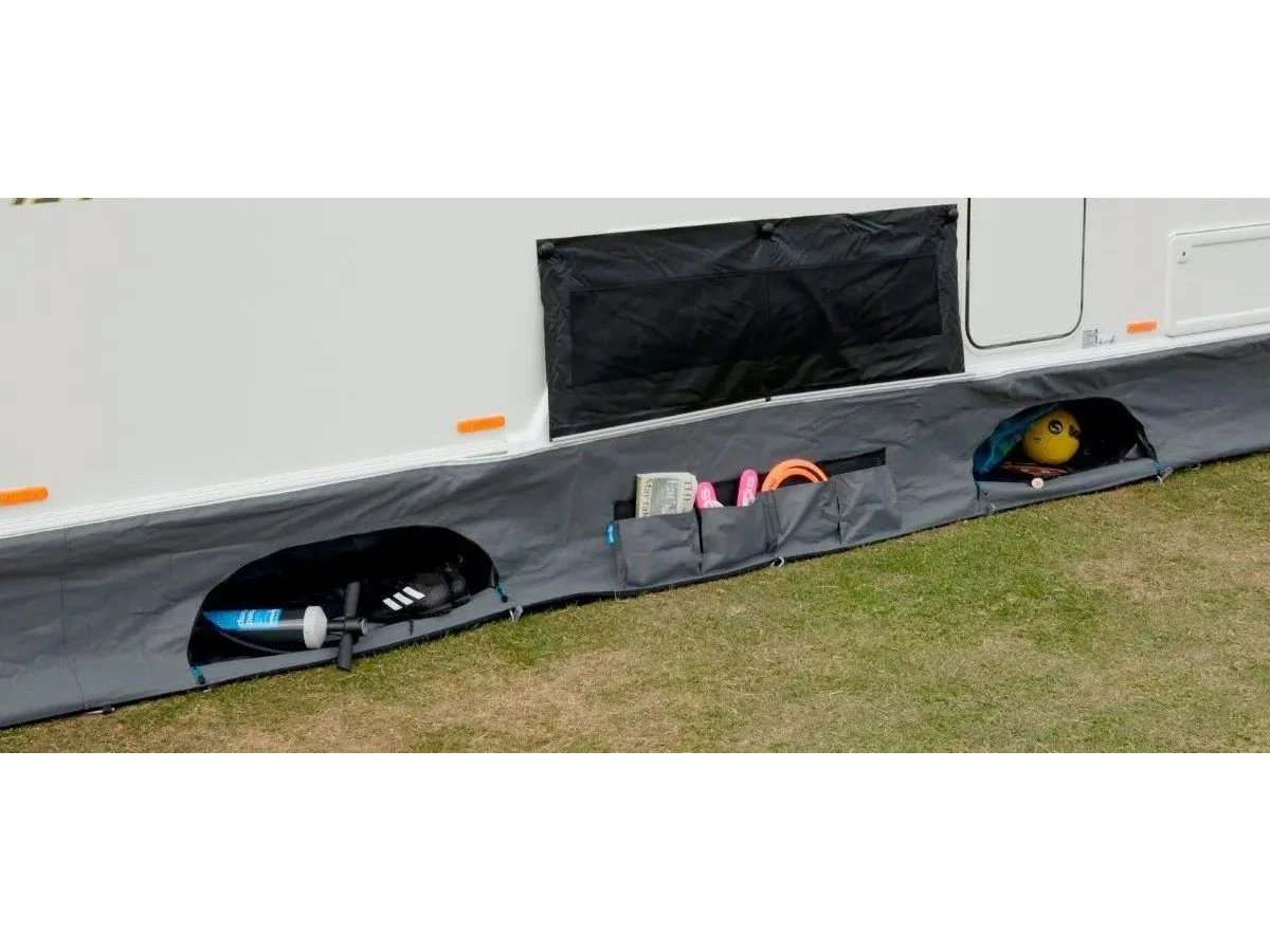 De grote opbergvakken kun je met recht groot noemen, hier past met gemak een klein tafeltje of bijvoorbeeld een parasolvoet in. Deze twee opbergvakken zijn gemaakt van waterdicht materiaal zodat je je spullen schoon en droog op kunt bergen. Aan de voorkant zijn ze af te sluiten met een rits.