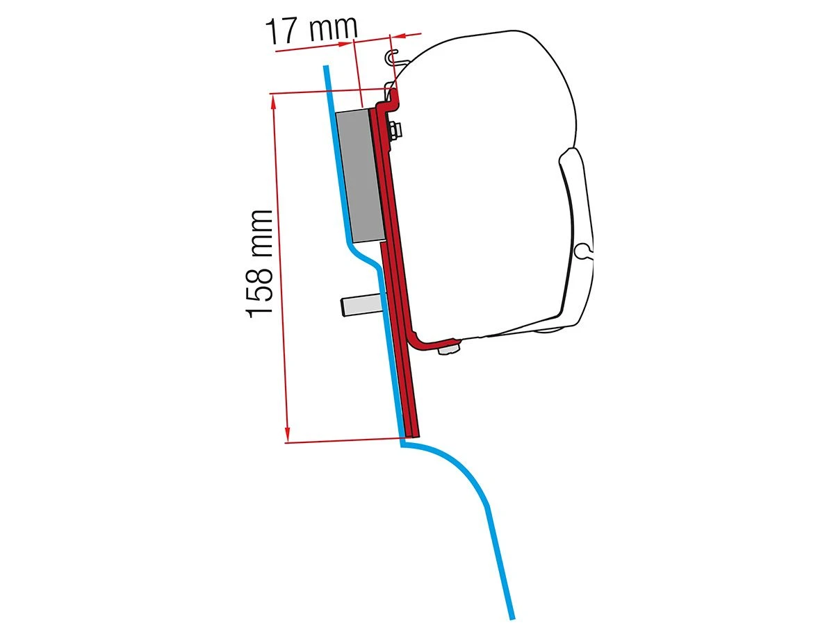 Deze adapter maakt het mogelijk om de Fiamma F45 luifel te bevestigen aan een Ford Custom Nugget. De set bestaat uit 2 beugels van 12 cm.