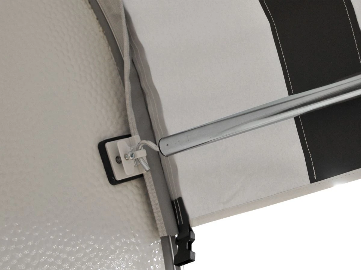 De Marvella dakluifel heeft een diepte van 235 cm en is volledig gemaakt van hoogwaardig Ten Cate Allseason tentdoek. Dit is kleurecht en volledig afwasbaar. De Marvella dakluifel is voorzien van een dubbele pees zodat het luifelframe met optionele SHS clips op te zetten is. Hierdoor hoef je niet in de caravanwand te boren of schroeven. Het luifeldak is voorzien van 6 clips waar optionele stormbanden aan bevestigd kunnen worden. Dit voorkomt het opwaaien van het luifeldak bij wind.