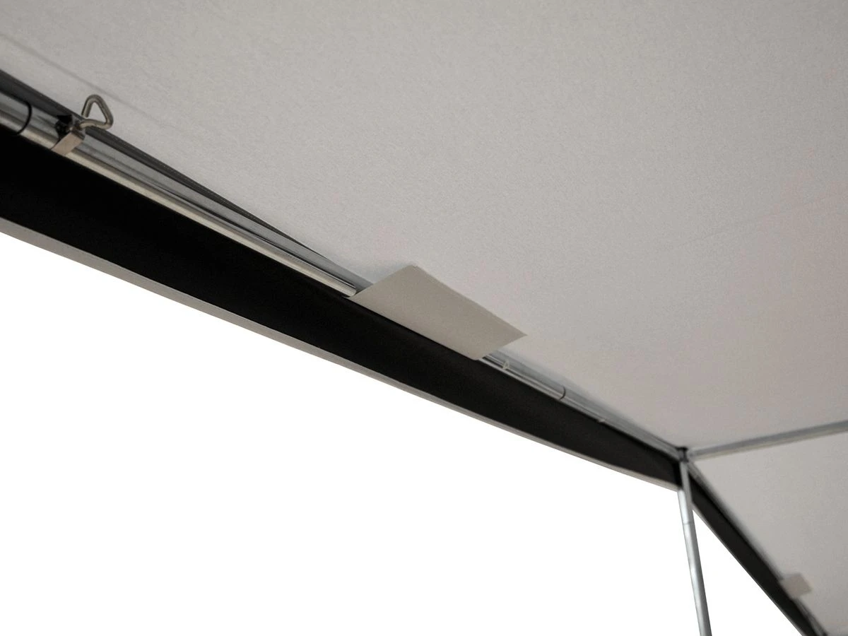 De achterzijde van de Marvella dakluifel is voorzien van verstevigingsvlakken. Hier kunnen optionele zeilogen in bevestigd worden zodat de Marvella dakluifel ook als voortentluifel gebruikt kan worden. Om de juiste maat te bepalen meet je de afstand tussen de punten van de voortent. Dit wordt ook wel de A-B maat genoemd. Je kiest dan de luifel waar de door jou gemeten maat tussen valt.