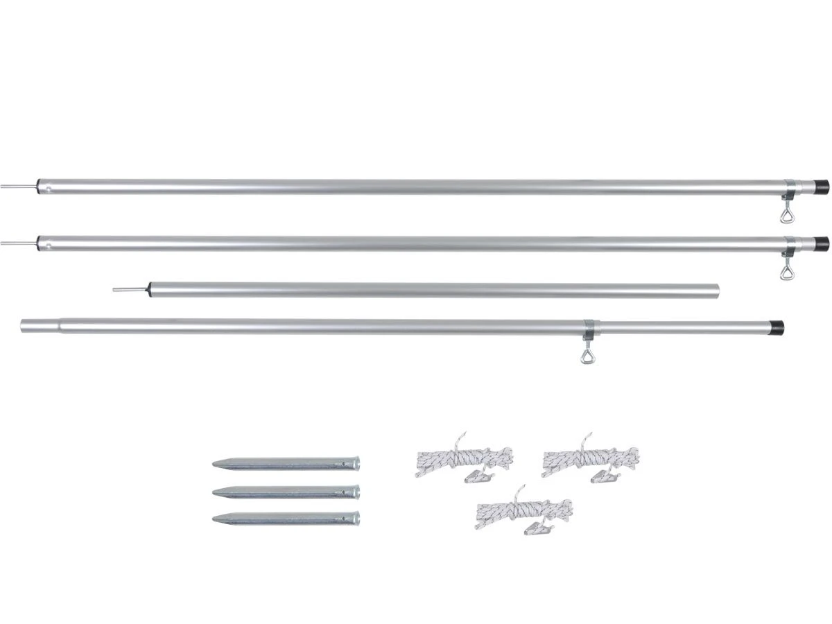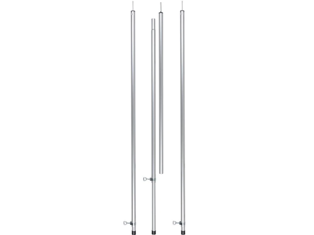 De twee korte staanders zijn 2-delig en maximaal uit te schuiven naar 195 cm. De lange staander is 3-delig en kan zelfs tot 245 cm uitgeschoven worden.