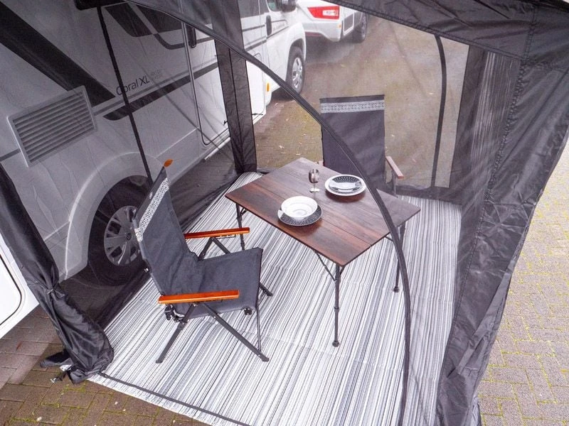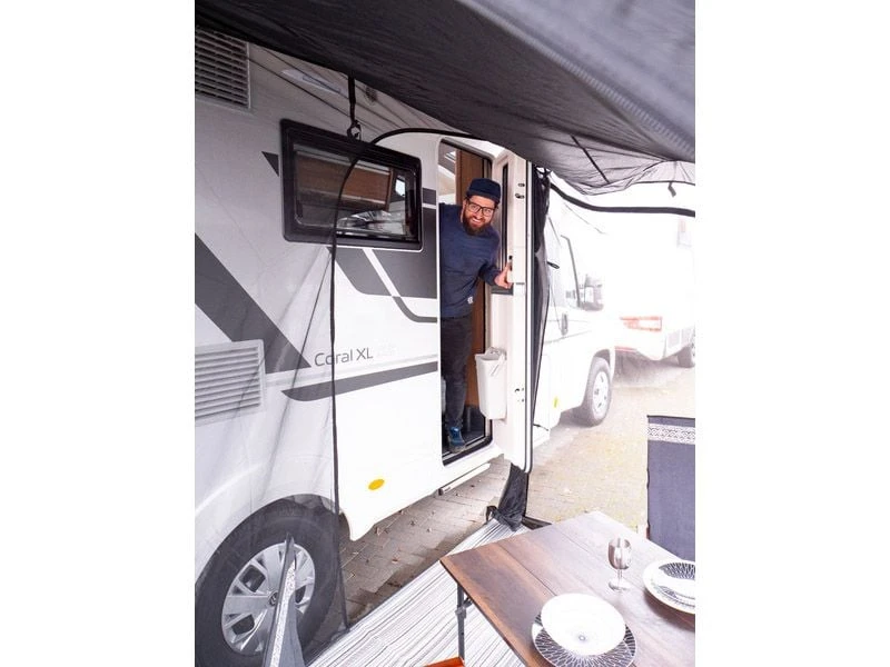 De Mosquito is een handige tent van horrengaas die je eenvoudig onder je luifel hangt. Haak de verstelbare spanbanden met clips achter de knikarmen van je cassetteluifel en zet de onderzijde vast met haringen. Beide zijwanden zijn voorzien van een oprolbare deur zodat je de luifeltent eenvoudig kunt betreden.