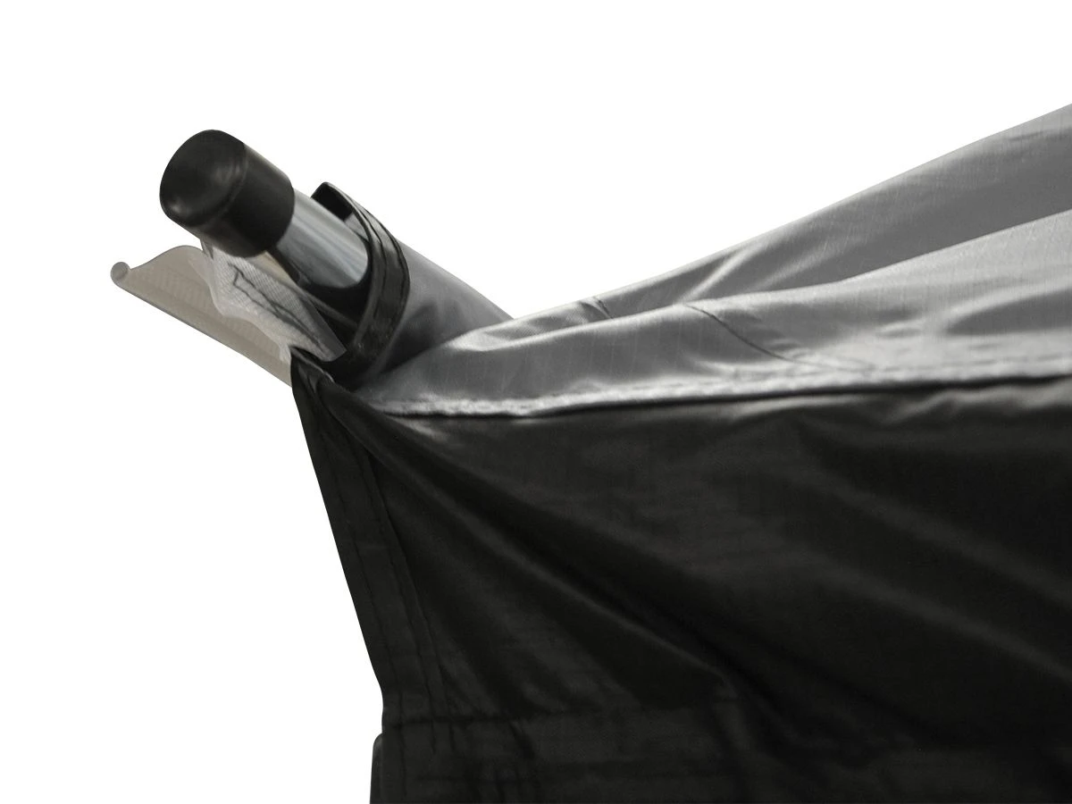 De Obelink Parasol is lichtgewicht en heeft een compacte pakmaat. Zo kun je hem eenvoudig meenemen zonder dat er veel bagageruimte verloren gaat. Dankzij de eenvoudige constructie is de Parasol ook razendsnel op te zetten. De Parasol is voorzien van een 7mm pees die eenvoudig in een tent- of multirail geschoven kan worden. Heb je een regengoot? Dan kun je de Parasol met de meegeleverde sluisstang en klemmen ook vastklemmen aan de regengoot.