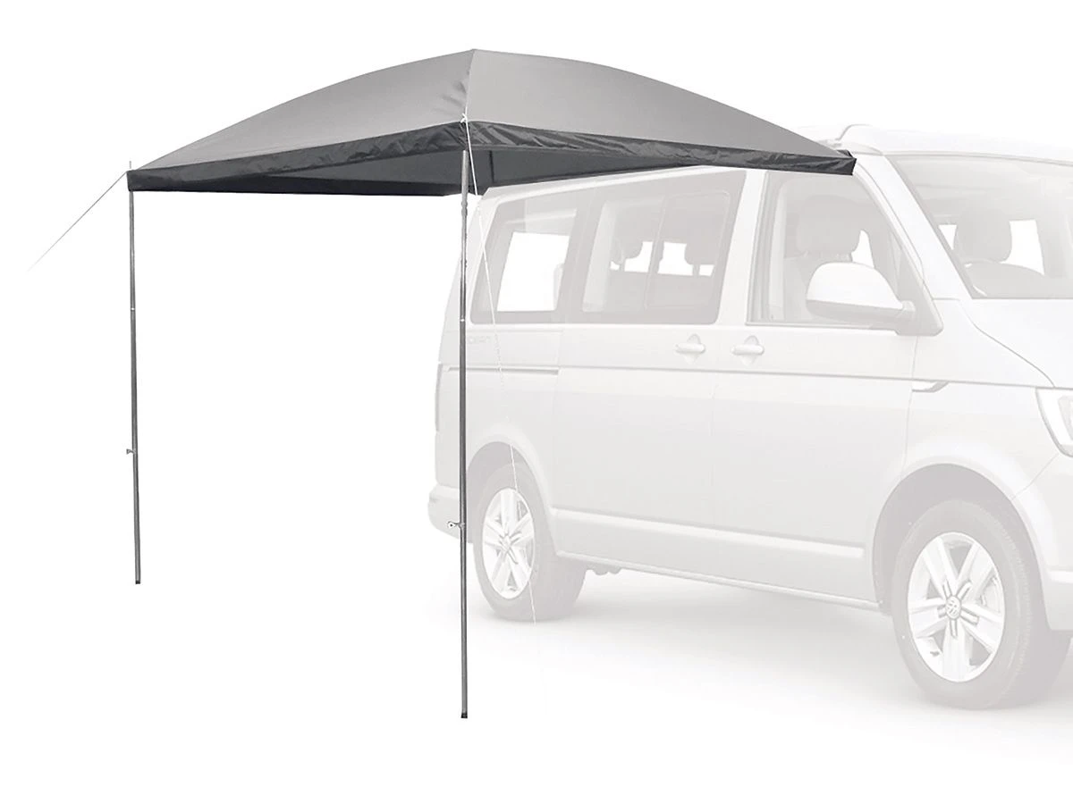 Wanneer je gaat rondtrekken met een kampeerbus heb je zo nu en dan wel eens behoefte aan extra beschutting. Bijvoorbeeld wanneer de zon schijnt of wanneer het wat minder goed weer is. Een busluifel is dan de perfecte oplossing. Dankzij de unieke koepelconstructie heb je voldoende stahoogte onder de luifel. Je hoeft dus niet meer gebukt onder de luifel te staan. Dit is ideaal voor kampeerders die wat langer zijn. De meegeleverde zijwanden zijn voorzien van grote vensters die van binnenuit volledig te bedekken zijn. Zo kun je lekker beschut uit de wind zitten.