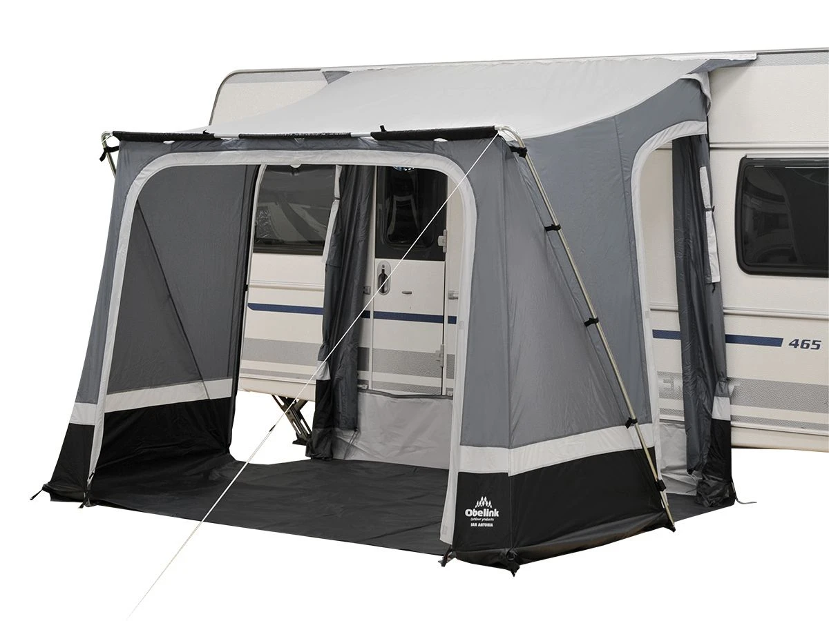 De Obelink San Antonia is voorzien van twee grote ramen in de voorwand. Deze ramen kun je naar wens van binnenuit openen of sluiten met een gordijn. Je kunt de voortent bovendien gemakkelijk omtoveren tot een luifel met zijwanden door de gehele voorwand er uit te ritsen.