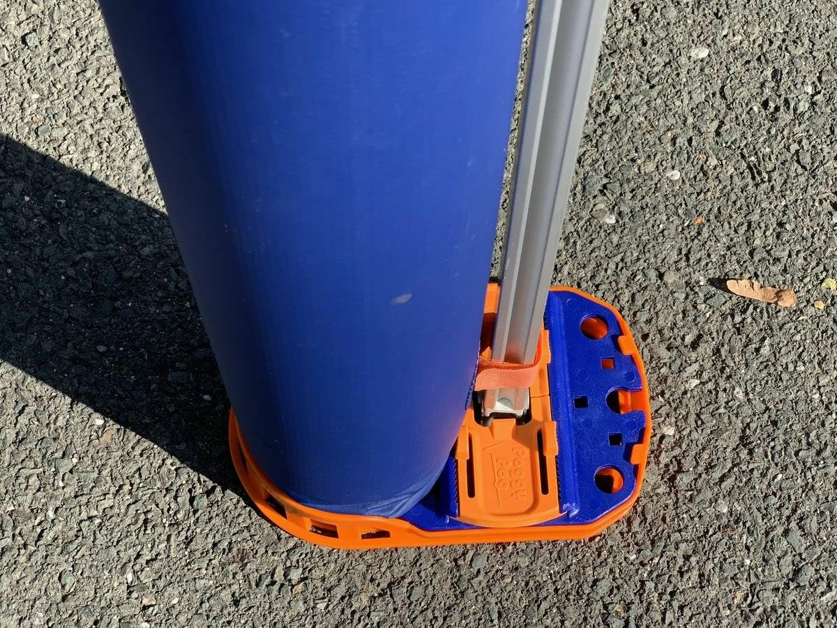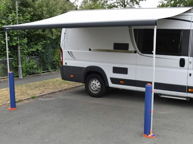 Dit probleem behoort met de Peggy Peg Fix & Go tube gelukkig tot de verleden tijd. De Fix & Go Tube is een ballasttank die met 10 liter water gevuld kan worden. Dankzij de geïntegreerde klittenband sluitingen kan deze eenvoudig aan de luifelpoten bevestigd worden. De Fix & Go Tube wordt standaard geleverd met een houder voor de optionele Peggy Peg Fix & Go ankerplaat voor meer stabiliteit. De Fix & Go Tube is geen vervanging voor stormbanden en haringen, maar is een handige toevoeging voor de kampeerder die vaak met zijn camper op een verharde plaats staat.