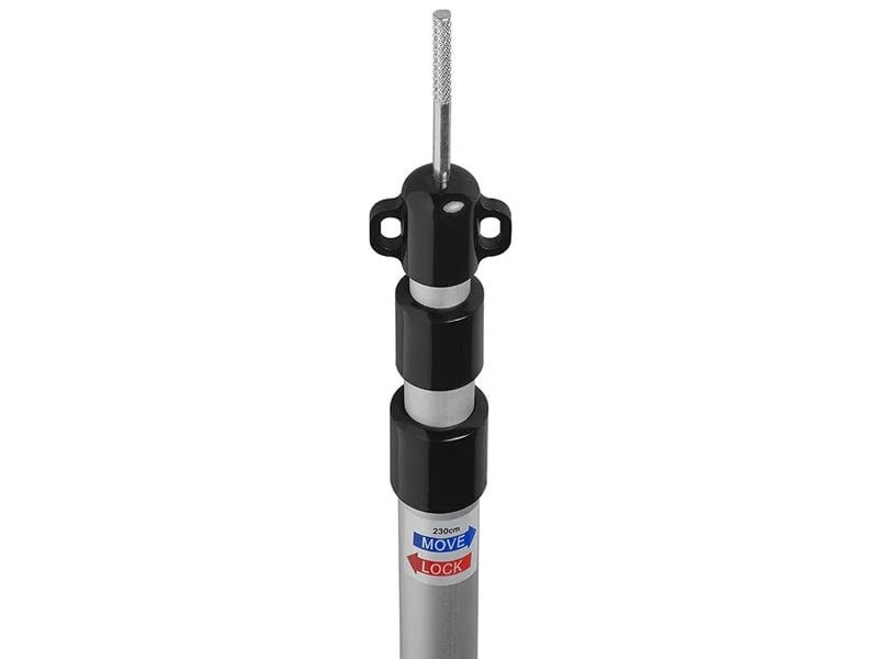 Deze set bestaat uit 2 telescopische luifelstaanders van aluminium. Dankzij het draaimechanisme zijn deze luifelstaanders eenvoudig in een handomdraai te verstellen van 90 tot 230 cm. De bovenzijde is voorzien van een stevige stalen punt die maar liefst 6,5 cm lang is.
