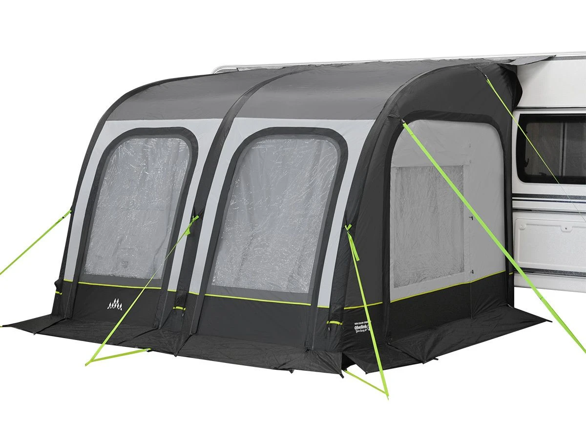 Bij de Obelink Viera 320 Easy Air Connected zijn beide zijwanden en alle deurpanelen in de voorwand volledig uit te ritsen. Als het lekker weer is tover je de voortent gemakkelijk om tot luifel door alle panelen er uit te ritsen. Afhankelijk van hoe je je caravan hebt geparkeerd kun je dankzij de uitgebreide mogelijkheden zelf kiezen welke deur je als hoofdingang gebruikt.