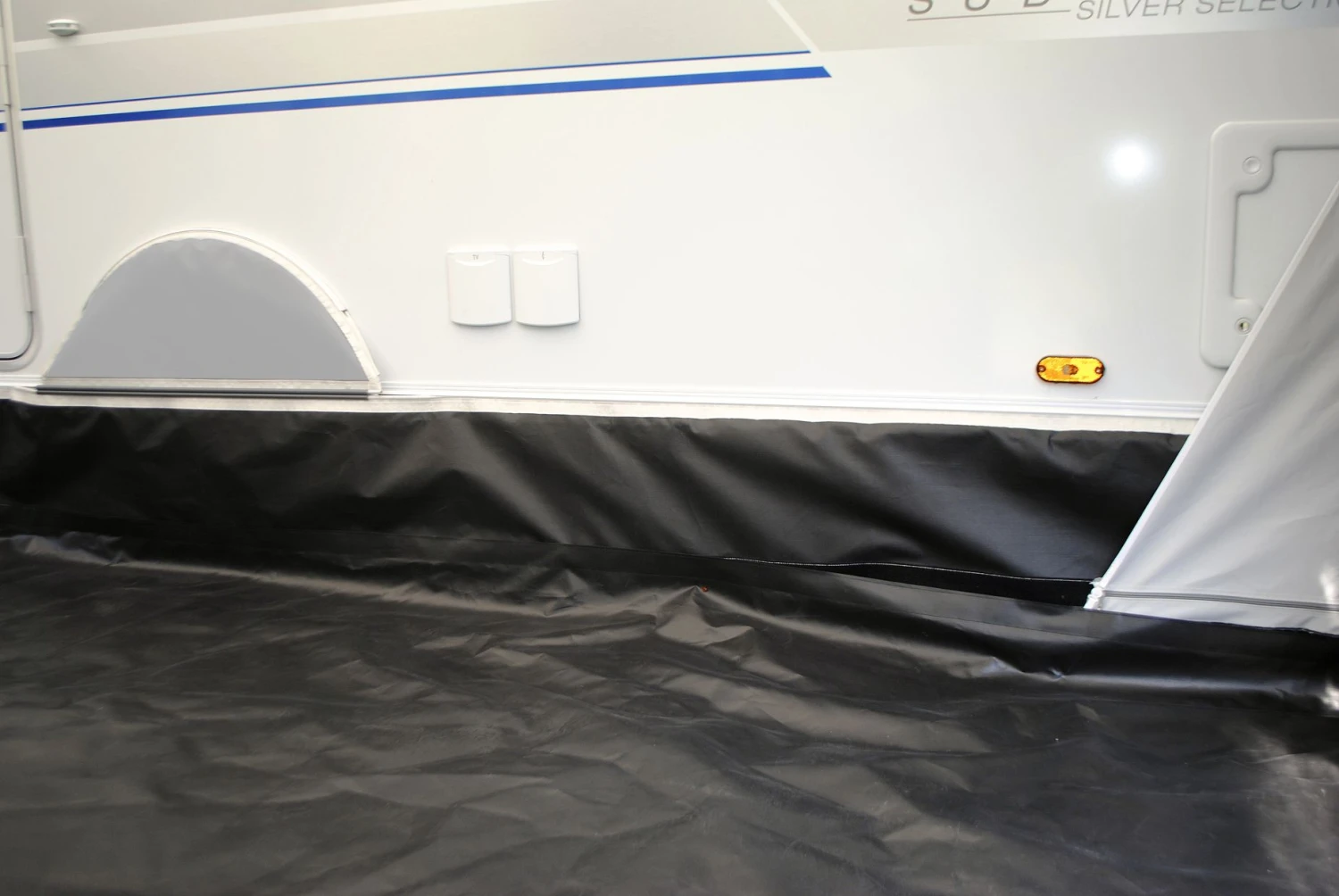 De opstaande rand van het grondzeil is voorzien van een klittenbandstrook die exact overeen komt met de klittenbandstrook die aan de binnenzijde van de Ellips 280 voortent zit. Zo ontstaat er een dicht geheel dat regen, tocht én ongedierte buiten de voortent houdt.